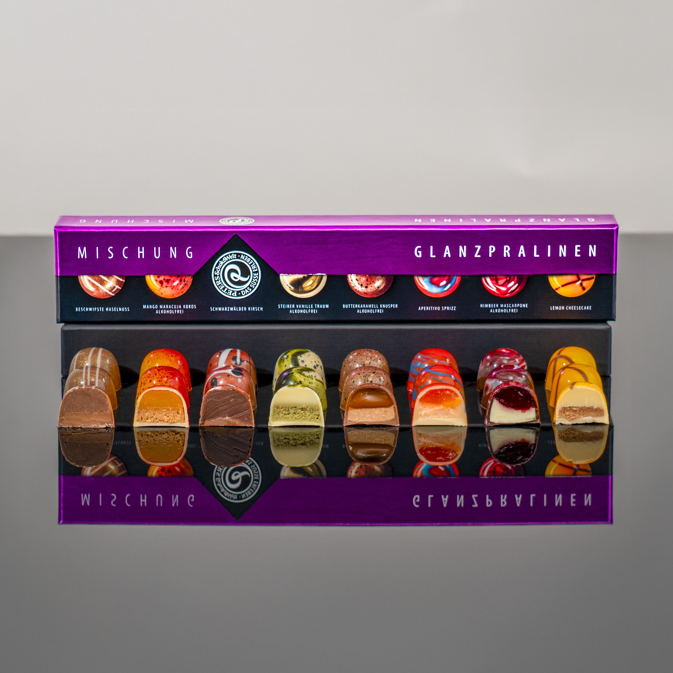 Warum sich entscheiden, wenn man alles haben kann? Unsere gemischte Auswahl an handgefertigten Glanzpralinen bietet das Beste aus beiden Welten: verführerische, alkoholfreie Köstlichkeiten und Pralinen mit edlen Likör- oder Spirituosenfüllungen. Jede Praline ist ein kleines Meisterwerk der PETERS SchokoWelt-Chocolatiers, die mit doppelten oder dreifachen Füllungen überraschen. Die edle Verpackung enthält acht glänzende Pralinen, die in einer eleganten Reihe präsentiert werden – perfekt für Schokoladenliebhaber, die sich nicht auf eine Geschmacksrichtung festlegen wollen.