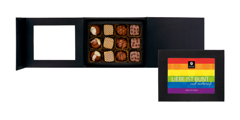 Dank des Kartonageneinsatzes und dem Einsatz moderner Pralinenkapseln auf Zellolosebasis erfüllt diese Packung unsere Nachhaltigkeitsansprüche voll und ganz.