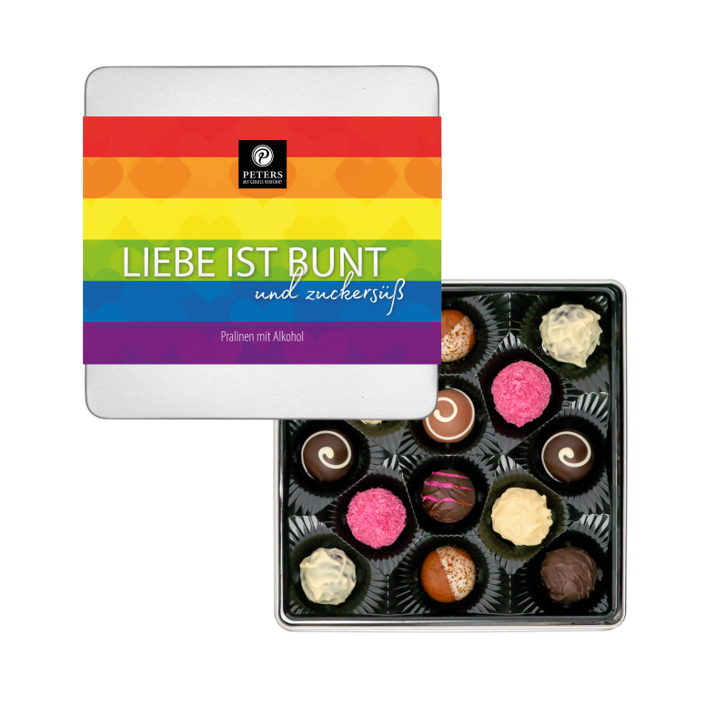 Diese hübsche Metalldose enthält die besten Trüffel aus dem Hause Peters. Schenken Sie Ihren Liebsten und Freunden eine hochwertigen Auswahl, die keine Wünsche offen lässt: Für Zartbitter-Pralinen-Fans haben wir leckere Rum-Trüffel, fruchtige Himbeergeist-Trüffel und zarte Eierlikör-Trüffel. Die meisterhaften Kreationen Kir Royal, Vanille-Trüffel und Marc de Champagne lassen die Herzen von Pralinen-Genießern höher schlagen. Latte Macchiato und Tiramisu-Trüffel verfeinern diese Komposition so, dass für jeden Geschmack das Richtige dabei ist.